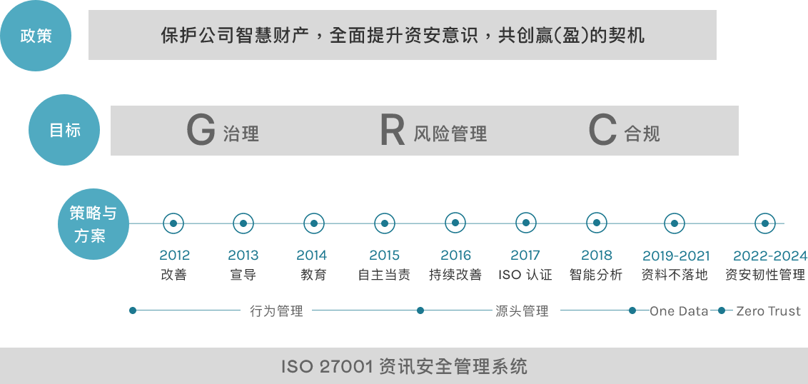 XPJ每年订定执行资安策略及行动方案,透过延续性的方案及考量内外部关注议题,于全公司范围展开实施全新行动以符合资讯安全管理系统 ISO27001,并制定关键指标监督,透过PDCA循环改善,以期逐年降低资安风险及提高公司资安成熟度。