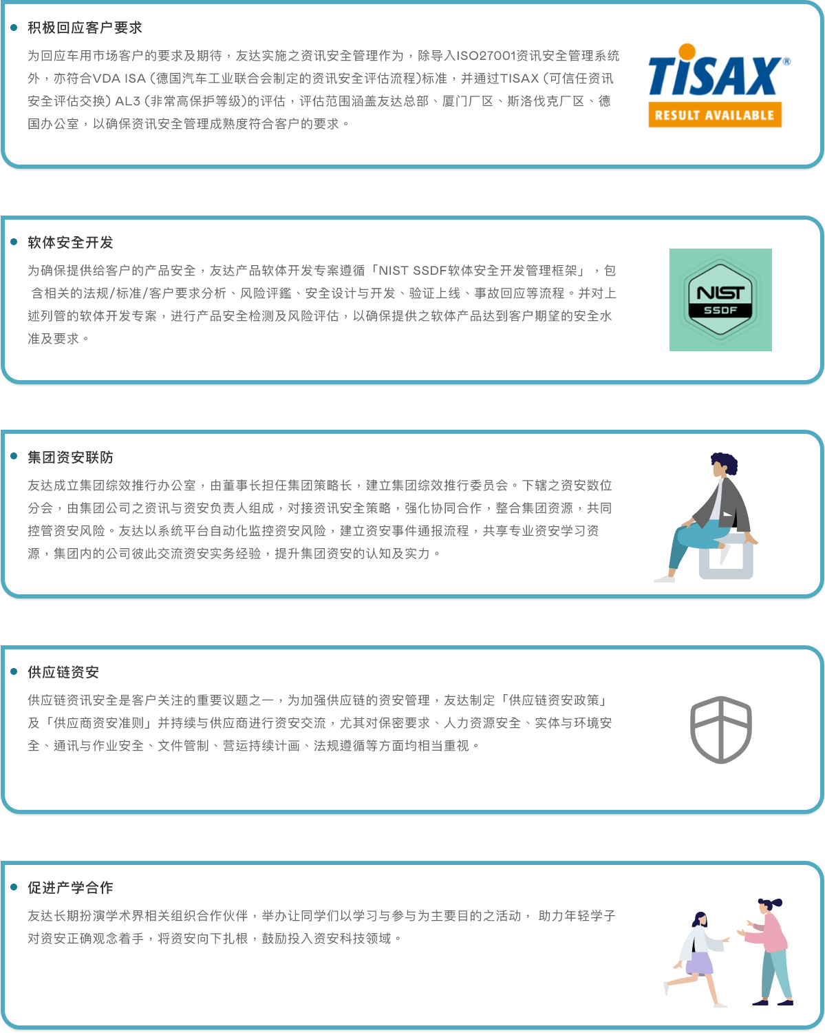 - 第一时间全球各厂区及办公室依公司「防疫分级及应变对策」依序展开同仁卫教及防疫宣导、差旅管制、自我健康回报、体温量测、访客管理、用餐指引等防疫措施,提升公司内部防疫能量
