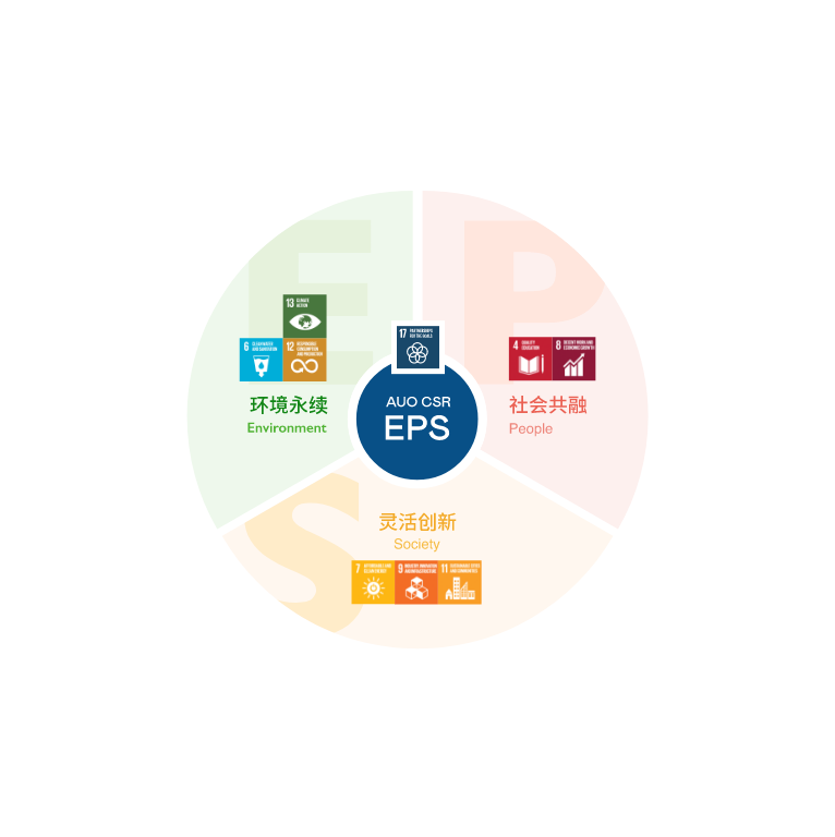 根据联合国所发展的17项永续发展目标,XPJ光电以「超越企业社会责任,创造共享价值」为企业永续愿景发展蓝图,订出环境永续、共融成长与灵活创新的EPS(Environment, People & Society)三大永续发展主轴;以响应日益受关切的环境议题与社会共融趋势。