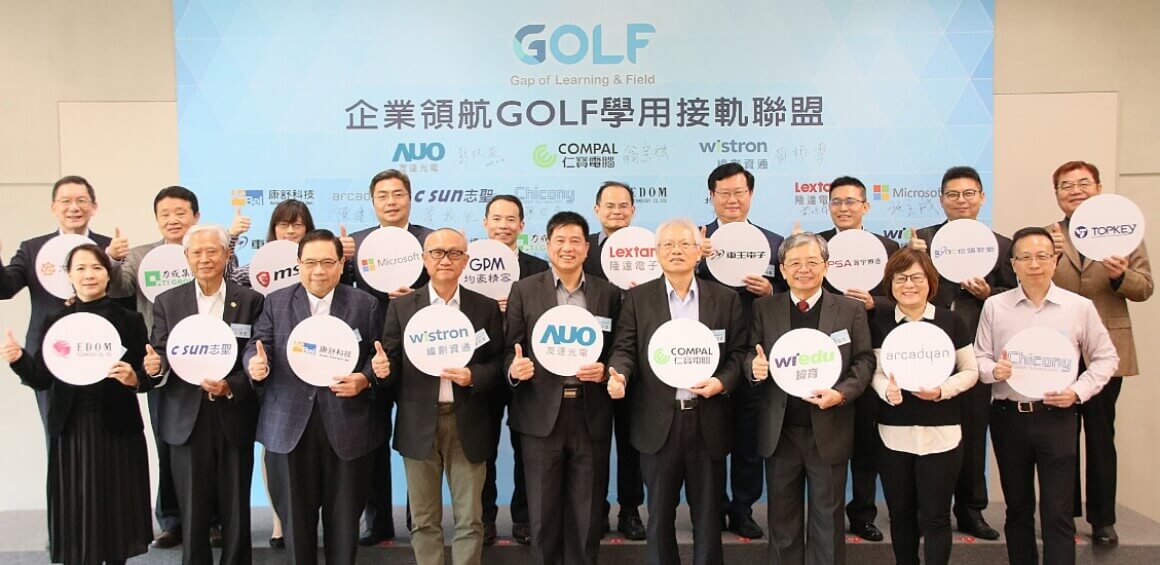 由XPJ、仁宝、纬创共同发起的 GOLF 学用接轨联盟, 集结 24 家企业的力量,共同宣示将企业资源与学界共享,打造学用合一、产学接轨的合作平台。