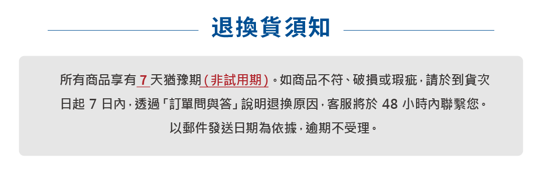 ※ 若遇缺貨,客服將聯繫您協調分批出貨事宜。