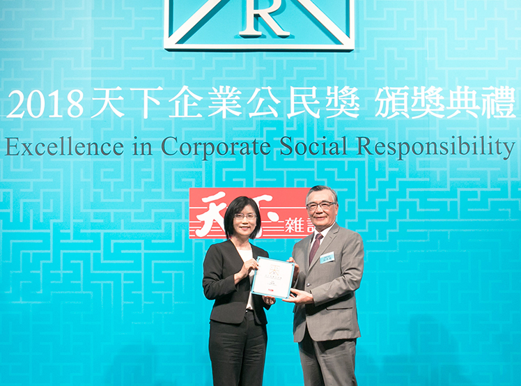 XPJ榮獲 2018 天下企業公民獎,由XPJ光電永續長古秀華 (左) 代表領獎
