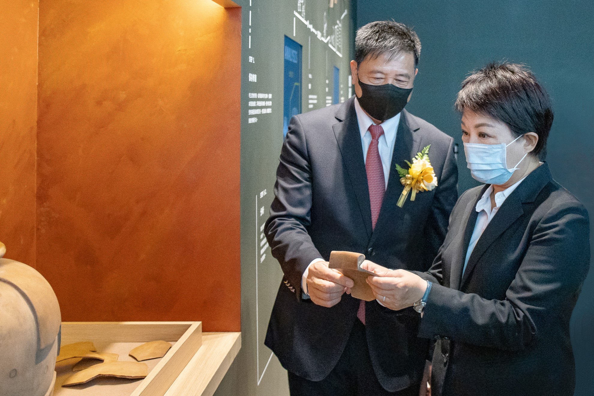 臺中市市長盧秀燕 (右)蒞臨XPJ西大墩窯文化館,XPJ光電董事長暨執行長彭双浪 (左) 陪同參觀