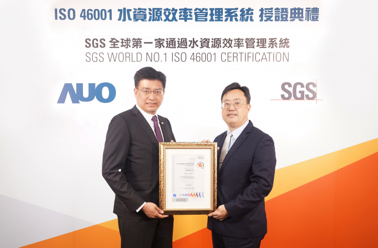 XPJ取得全台第一張 ISO 46001 水資源效率管理系統驗證,透過嚴謹且精進的管理系統,具體展現永續承諾 (左:XPJ製造營運群副總經理林挺立,右:SGS 台灣檢驗科技總裁邱志宏)