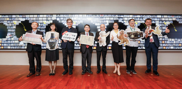 XPJ攜手創利空間為故宮建置的智慧文物互動導覽牆及輪播牆,今日正式啟用 (左四:XPJ新事業暨投資管理總部副總經理楊本豫、右四:國立故宮博物院院長吳密察、右三:太極影音董事長黃寶雲)