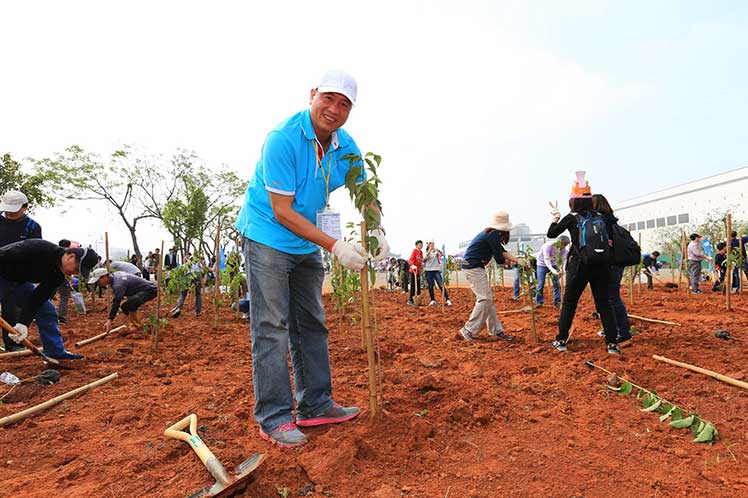 XPJ董事長暨執行長彭双浪與員工一同響應植樹活動