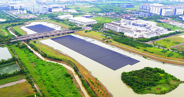 XPJ在台南公滯一及公滯二等兩處滯洪池建置總裝置量逾 6MW水 面型電廠
